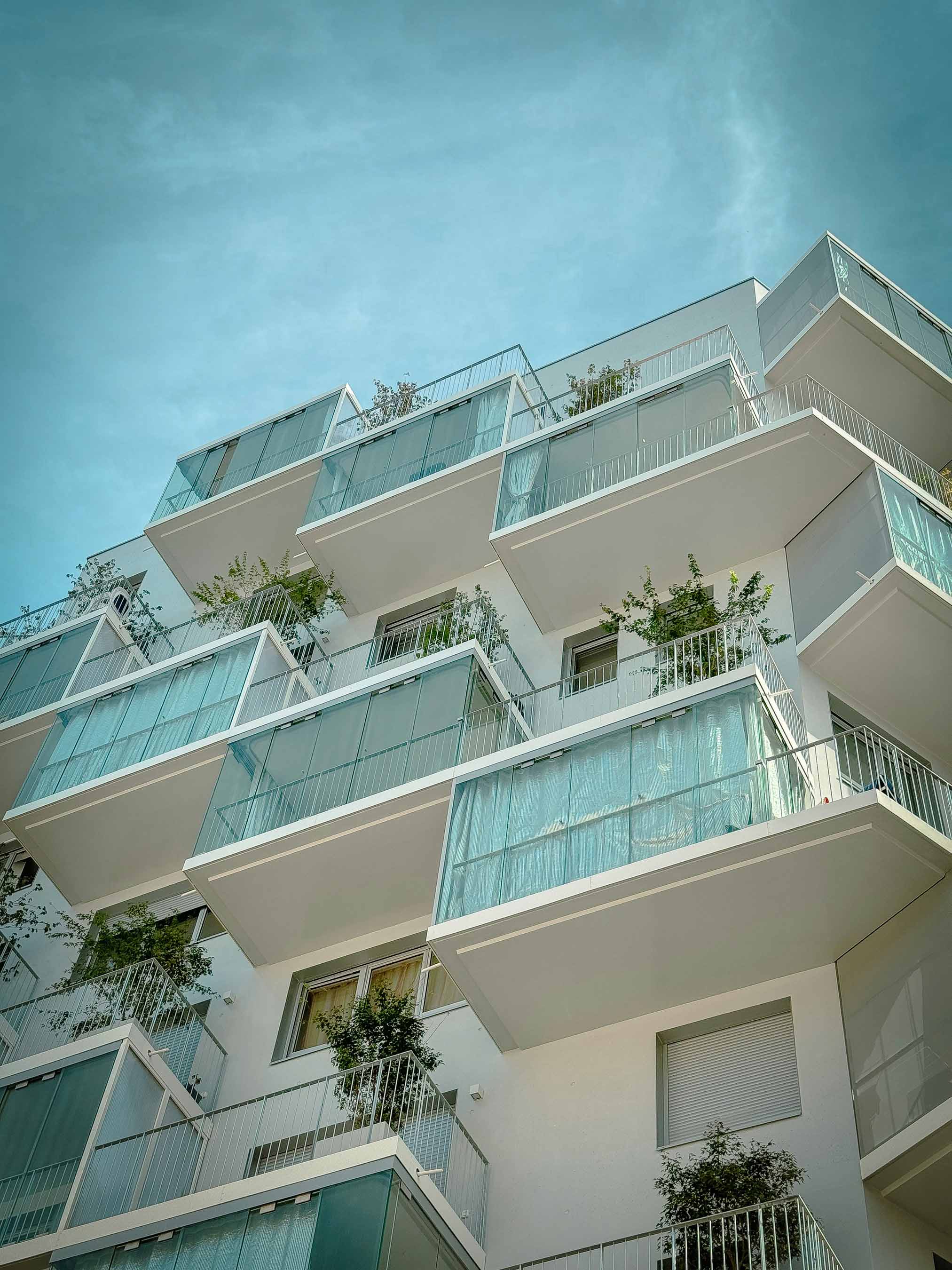Façade d'un immeuble moderne en verre avec reflets, illustrant le nettoyage et l’entretien de bâtiments à Genève.